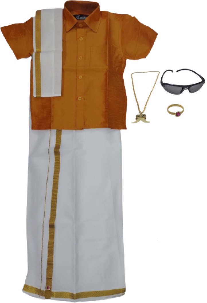 Traditional Dhoti & Shirt SET WITH ACCESSORIES (Bracelet, Chain, and a Sun Glass)